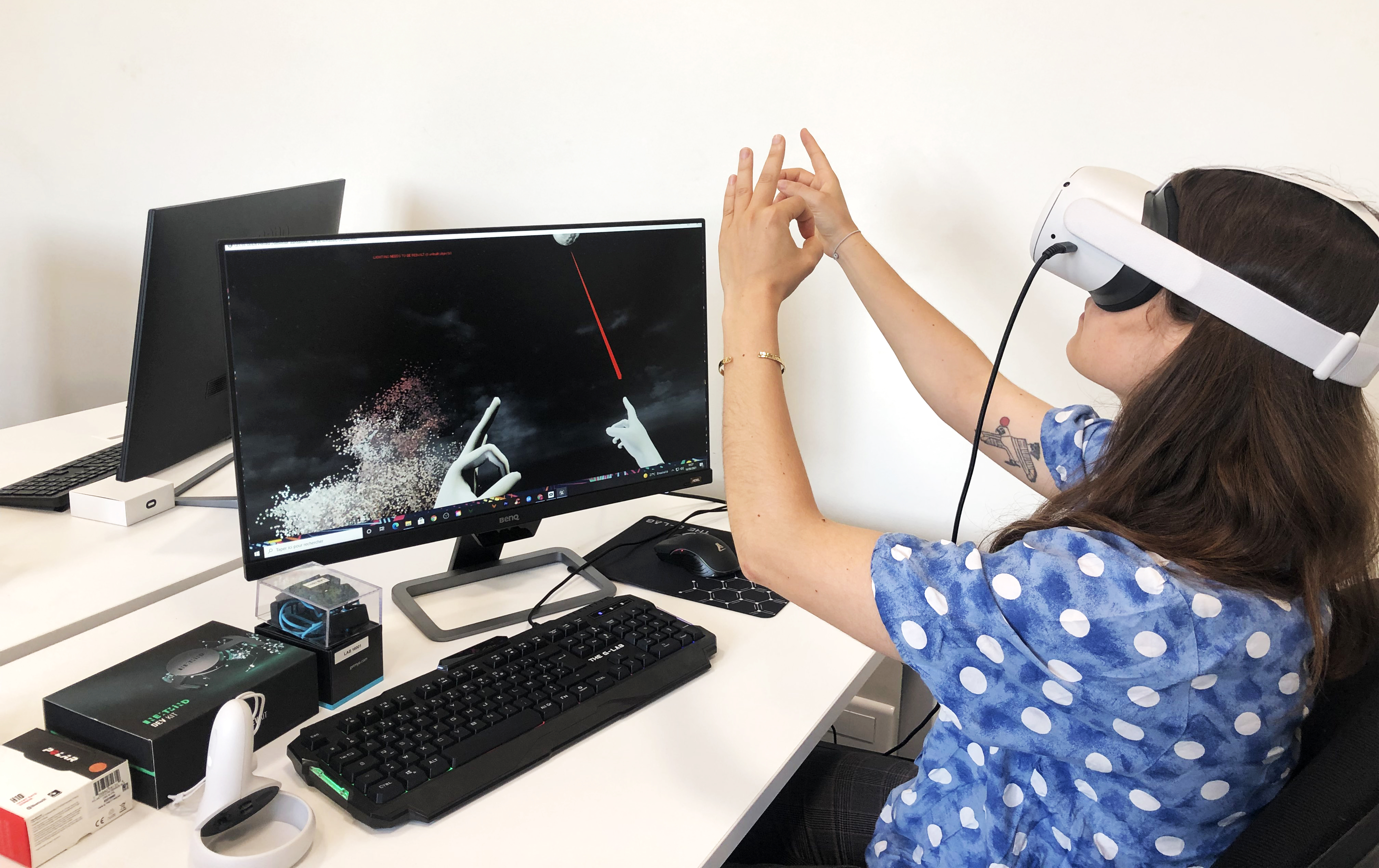 Our artistic research explores the creation of emotional environments in “3D pointillism” using Unreal Engine’s Niagara plugin and gravitational elements. This visual style adapts precisely to heart rate variations, allowing figurative elements to “dissolve” into points that later rematerialize into other figurative forms.